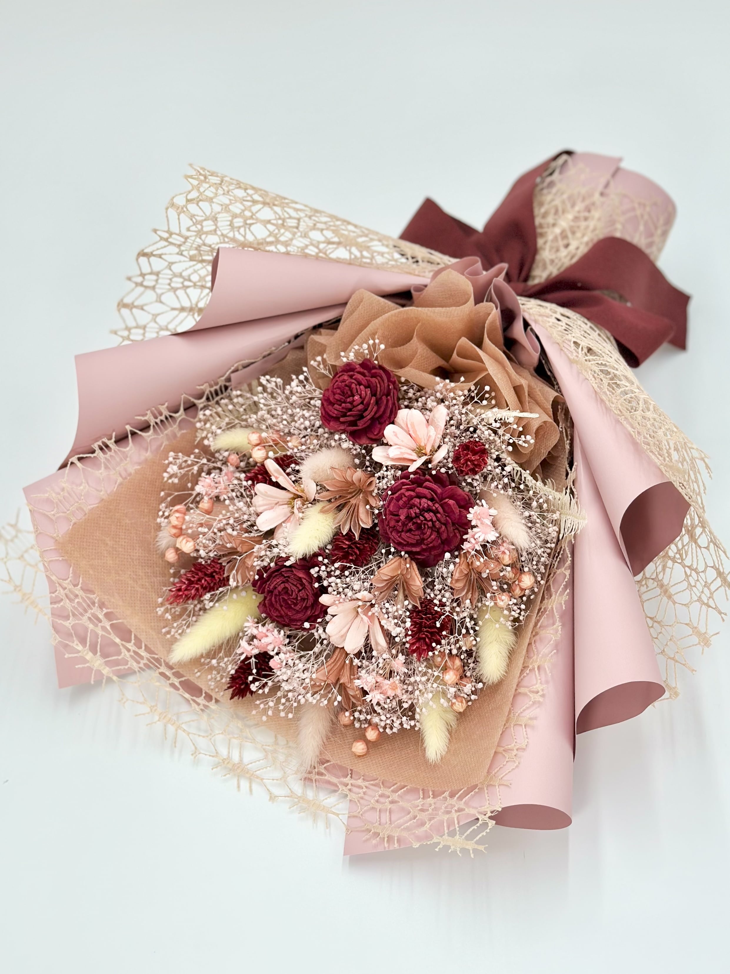 落ち着きのある華やかなドライフラワー花束です